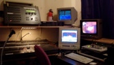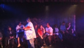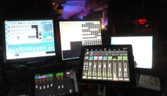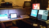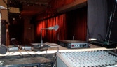 While we only seat 50 to 65 people, depending our our stage set up, it has many features of much bigger theatres. The stage while not very deep can range from 24 to 40 feet wide. We have a fully computerized lighting system complete with moving lights, 10 LED PAR Cans, 12 Source fours, 10 Shakespeares, and 10 PAR 64. The theatre is equipped with a 24 channel mixing board and another 24 channel board to mix our 12 cordless mics. We have two video projection (One DLP the other a three LCD Sharp projector) systems complete with media severer or one of three video switchers. We have the ability to add fog, haze, or even snow.
